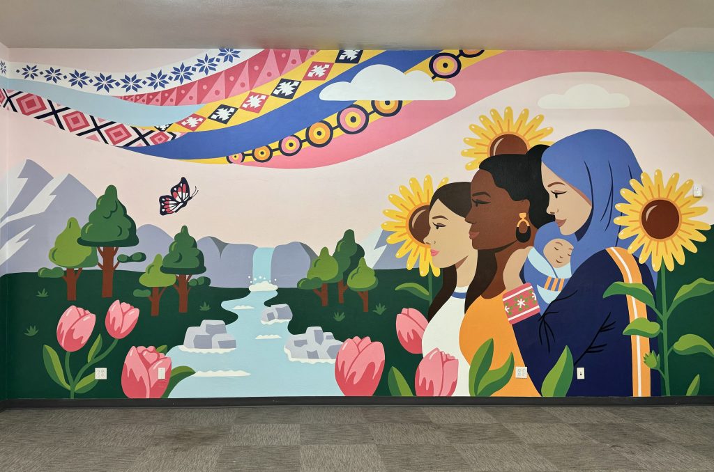 This summer, we’ve been fortunate to work on a range of mural projects that reflect both the creativity and resilience of our community. One recent highlight is a new mural at the International Rescue Committee’s Women’s Resilience Center, shaped by the input of women from refugee communities including Afghanistan, Ukraine, Haiti, and Arabic-speaking countries. Through a series of art workshops, participants shared symbols and themes important to them, ideas that became the foundation for Lead Artist JoJo Wang’s final design. Over three paint days, many of the women and their families helped bring the mural to life. At a time when refugee and immigrant communities continue to face serious challenges, this project was a chance to create something meaningful and lasting together. A chance to celebrate and have space to feel seen.