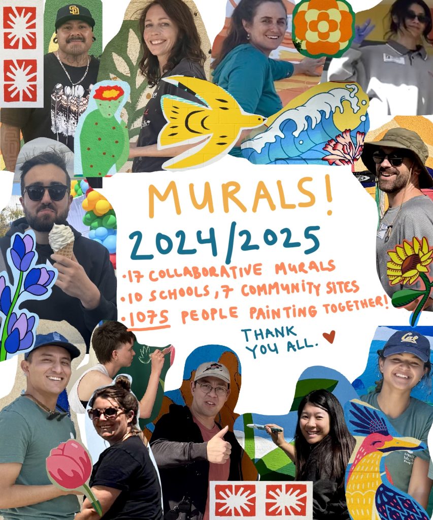 As we look at our last mural season, we are proud to share that we completed 17 collaborative murals across 10 schools and 7 community sites, with 1,075 people painting alongside us. None of it happens without the dedication, skill, and heart of our mural team, and we’re lucky to work with such a thoughtful and hardworking group. Big thanks as well to our partner sites, volunteers, donors, and friends at Colorama Paint and Supply for being a part of it all.