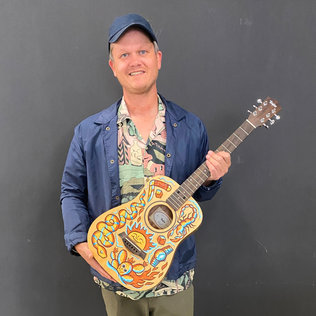 Twenty-five local artists transformed guitars, surfboards, and skateboards into custom works of art with acrylic paint, paint pens, tape, and more! These items will be sold through an online auction April 15-30, and will be exhibited during Mission Fed ArtWalk to showcase the Charity Art Auction during their event in April 2025.
