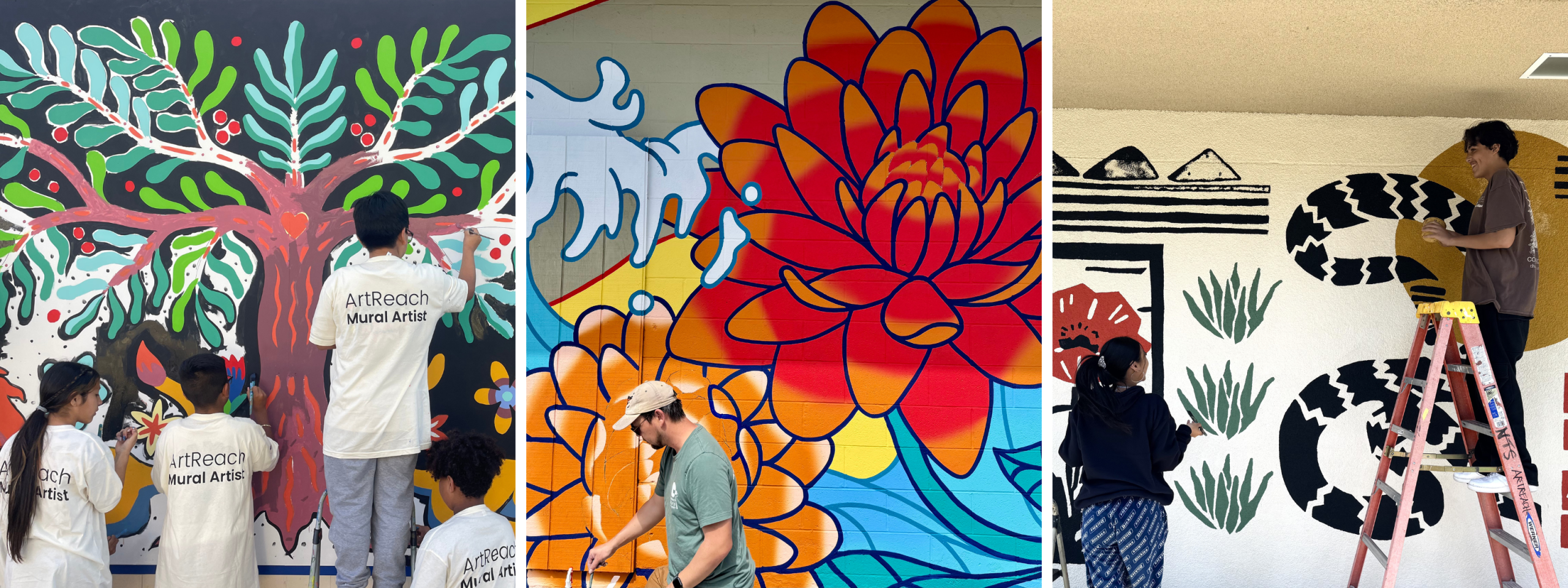 The ArtReach Mural Program creates community-driven public art throughout San Diego County. Our murals are developed alongside youth, residents, and local partners to reflect the stories, identities, and lived experiences of the places they inhabit. We work across schools, businesses, affordable housing, commercial spaces, parks, and neighborhoods, bringing art into the spaces where community life unfolds. Led by our passionate team of professional art educators and muralists, the program blends arts education with public art practice, transforming shared spaces into meaningful visual landmarks that build connection, pride, and belonging.