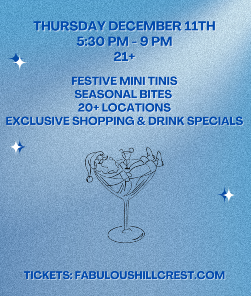 ArtReach is excited to participate in Taste ’N’ Tinis, Hillcrest’s iconic holiday sip-and-shop celebration hosted by Fabulous Hillcrest. This joyful neighborhood event is part of the SHOP Hillcrest for the Holidays campaign and brings the community together for an evening of festive drinks, delicious bites, and unique local shopping.