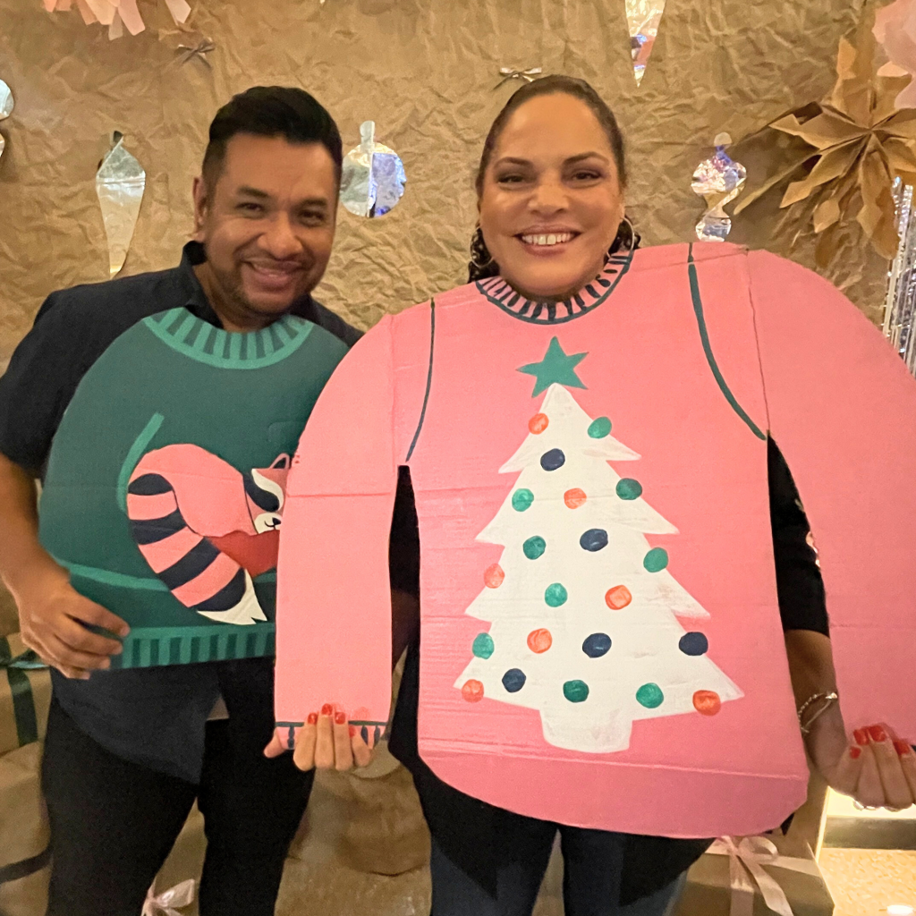 - A donation-based photo booth with holiday sweater props – festive photo strips included!